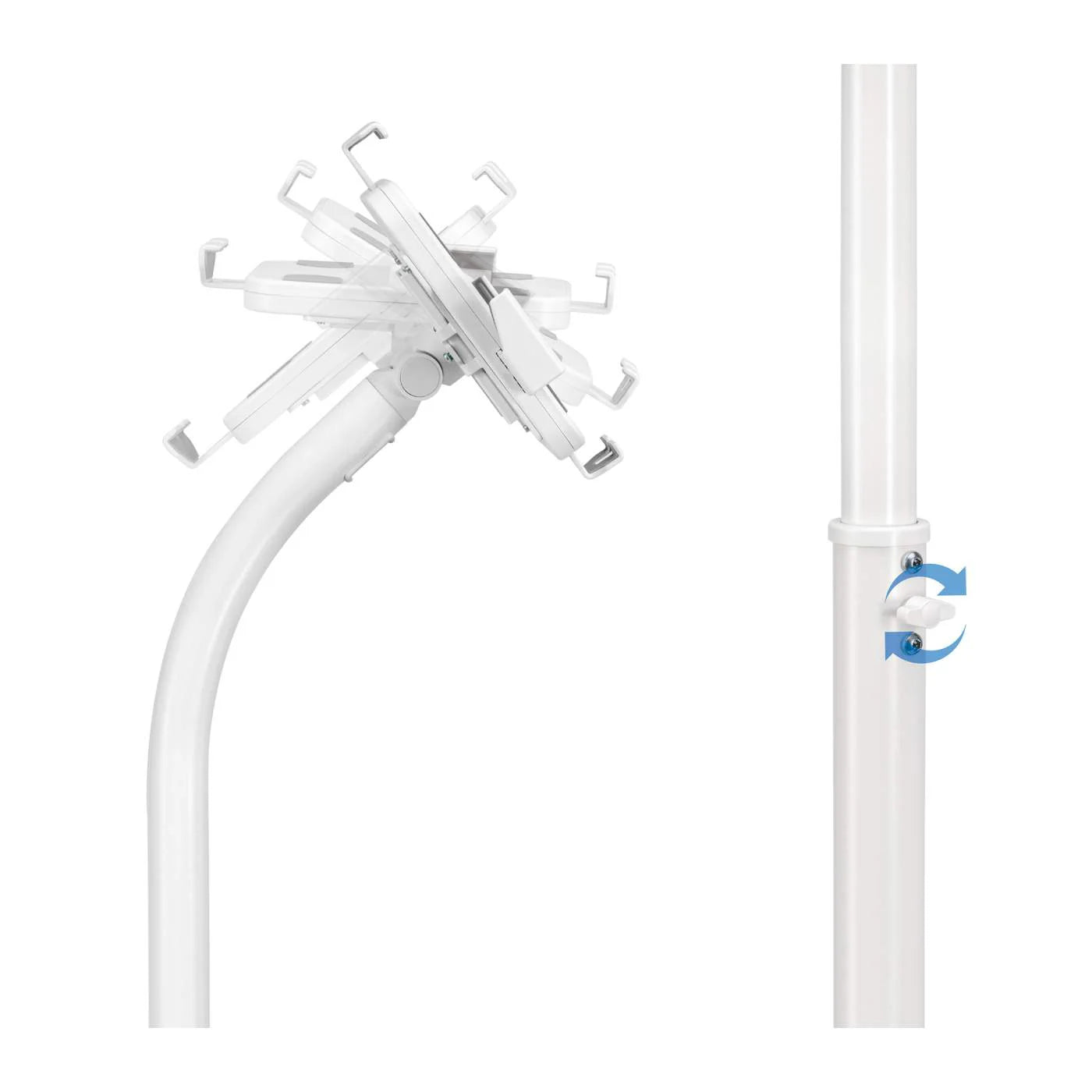 - Soporte de kiosco seguro y antirrobo que se ajusta para adaptarse a todas las marcas y tamaños de tabletas de 7.9" a 11" y hasta 1 kg (2.2 lbs.)