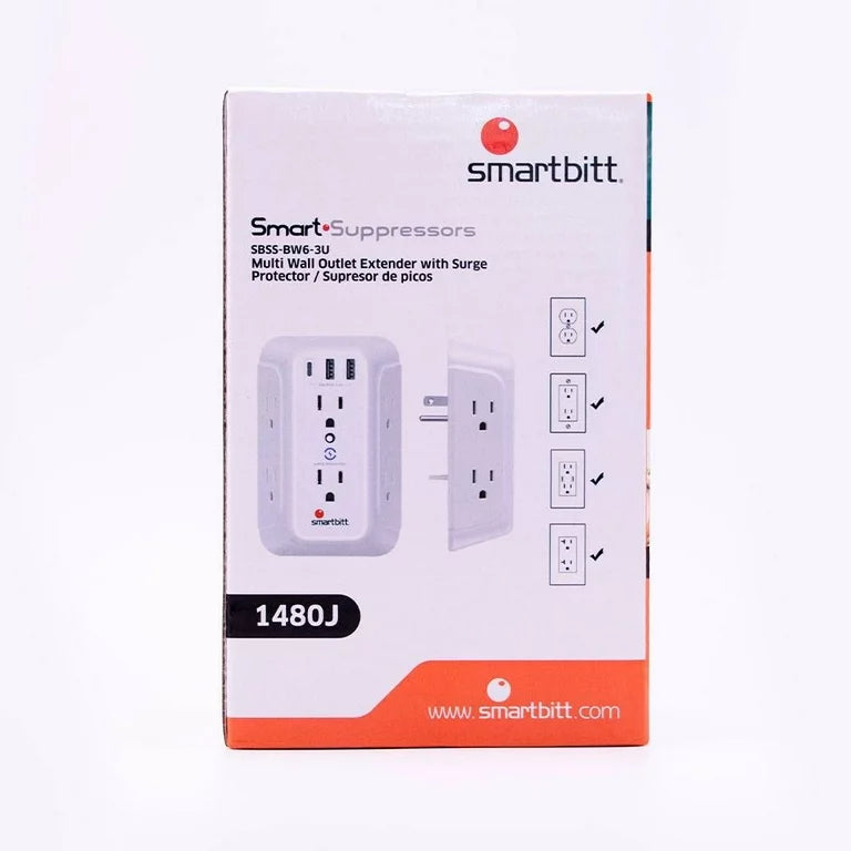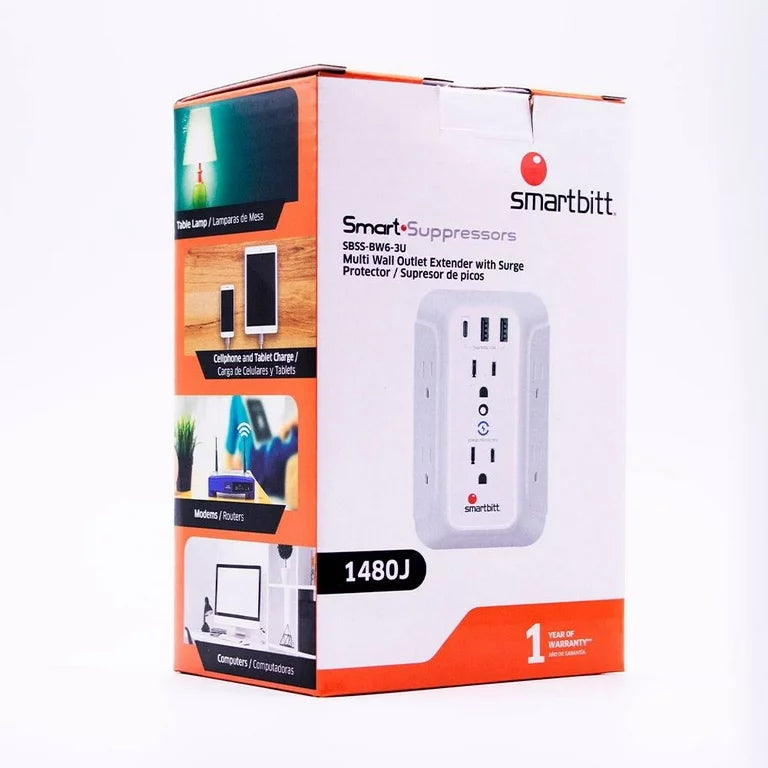 Supresor De Picos Smarbitt 1480J, 6 Cont Toma Usb-A/Usb-C (SBSS-BW6-3U)