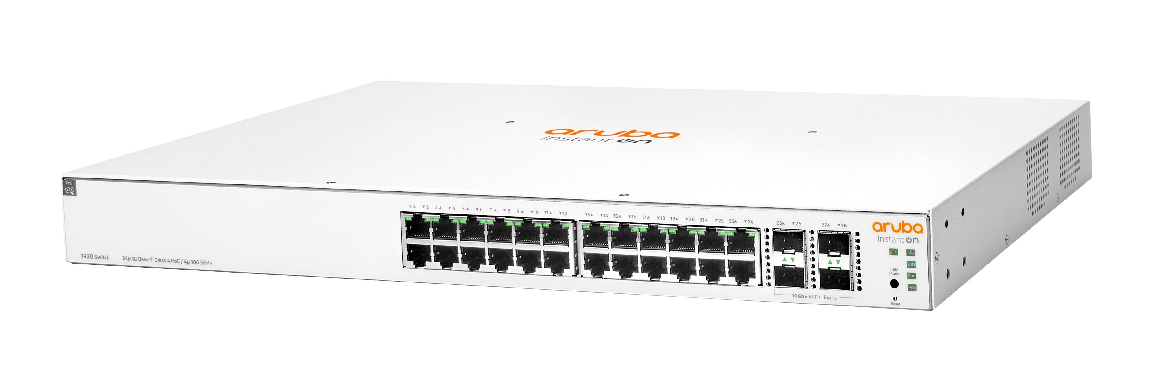 - El conmutador Aruba Instant On de la serie 1930 ofrece una implementación plug and play sencilla y lista para usar.