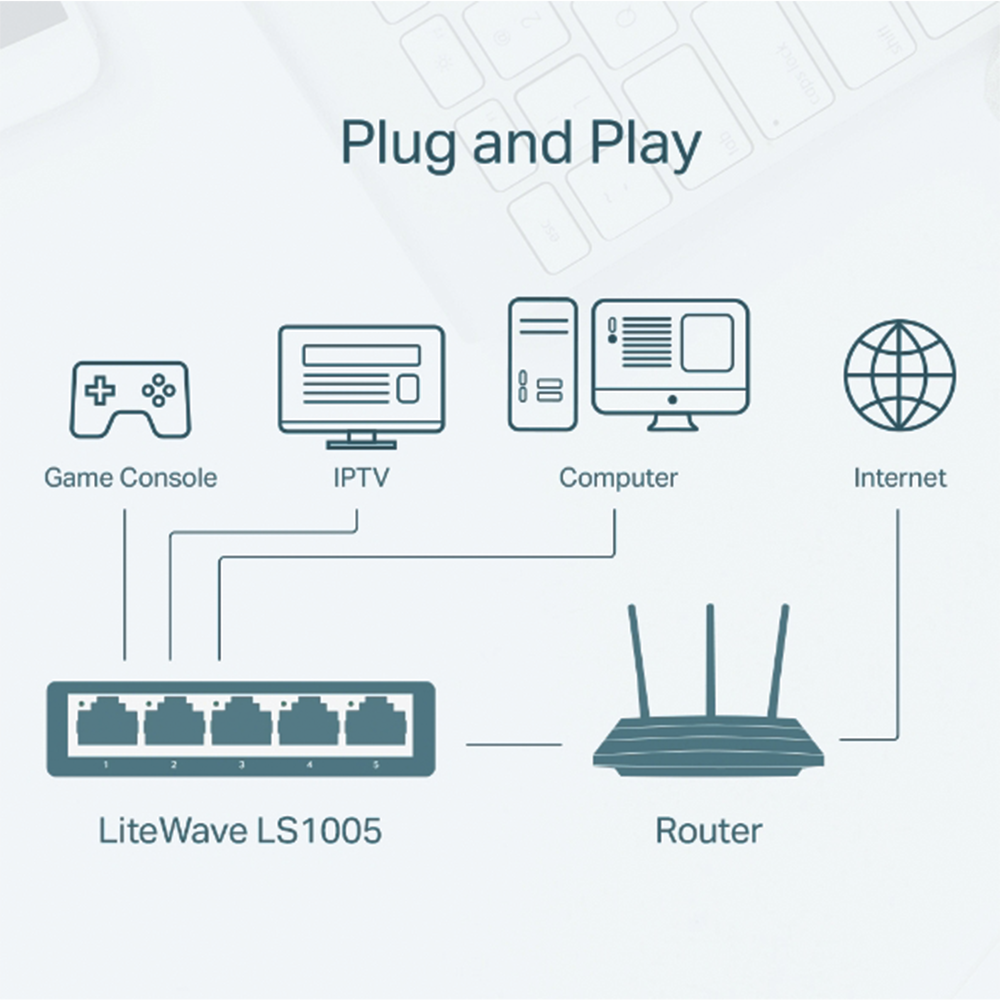 Los conmutadores no administrados de la serie TP-Link LiteWave proporcionan una forma fácil y económica de expandir tu red cableada. Son fáciles de usar y confiables. Con estos conmutadores plug-and-play, puedes expandir tus conexiones de red a múltiples dispositivos al instante. Con todos los puertos compatibles con Auto-MDI / MDIX, no hay necesidad de preocuparse por el tipo de cable a utilizar.