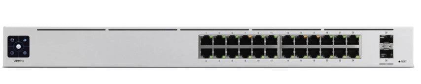 El Ubiquiti UniFi Switch Pro 24 es un switch gigabit gestionado de capa 3 con 24 puertos y 2 puertos SFP+ de 10GB. Este switch incluye una amplia gama de capacidades de capa 2 e integra funcionalidades de capa 3, como enrutamiento inter-VLAN, enrutamiento estático y servidor DHCP. Además, cuenta con un sistema de refrigeración casi silencioso. Es ideal para conectar puntos de acceso, cámaras IP y teléfonos VoIP, proporcionando simultáneamente energía y datos a estos dispositivos.