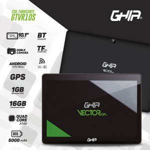 Tablet Ghia 10.1 Vector Slim, A100 Quadcore, Ips, 1gb Ram, 16gb, 2cam, Wifi, Bluetooth, 5000mah, Android 10, Negra