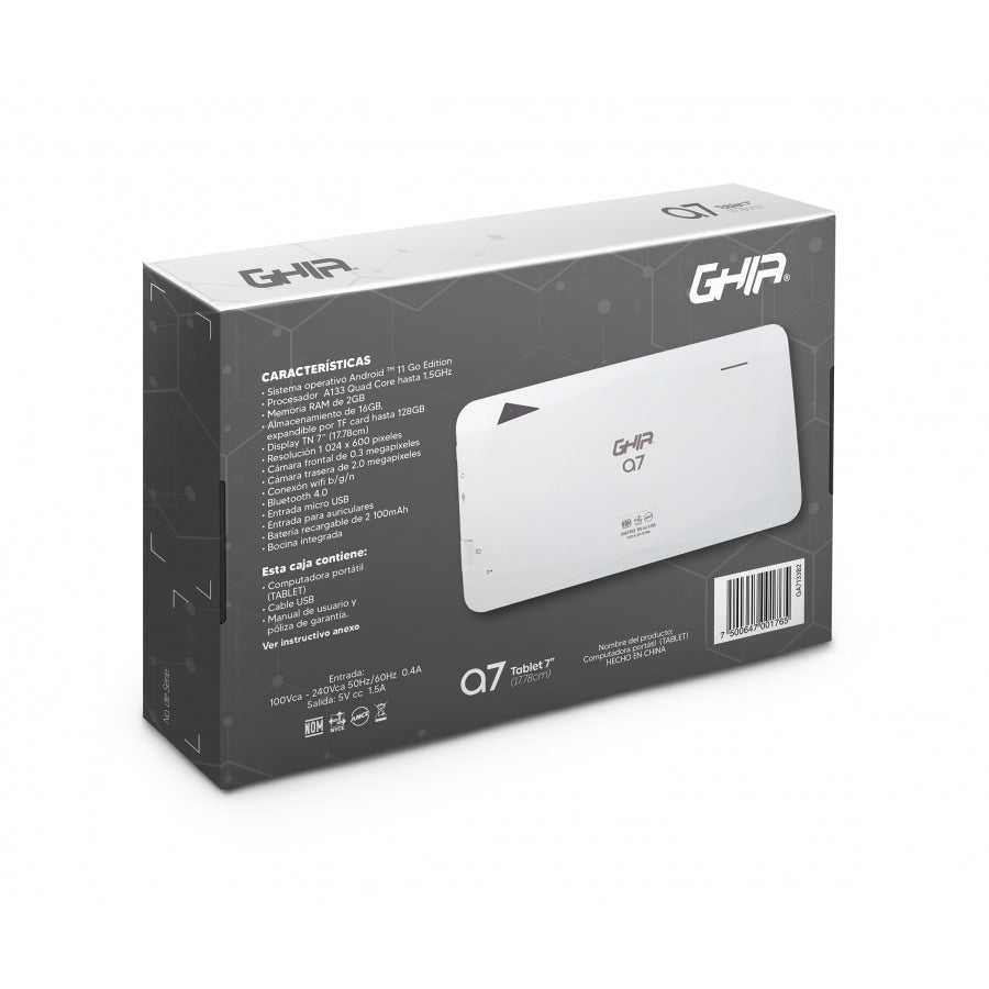 Tablet Ghia 7 A7 Wifi, A133 Quadcore, 2gb Ram, 16gb, 2 Camaras, Wifi, Bluetooth, Android 11, Blanca