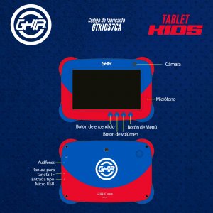 Tablet Ghia 7 Kids, A50 Quadcore, 1gb Ram, 16gb, 2cam, Wifi, Bluetooth, 2500mah, Android 9, Azul