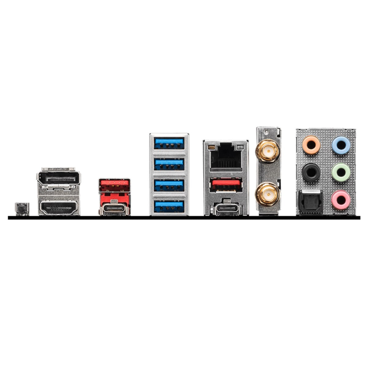 - Conectores: DisplayPort USB 3.2 Gen 2 10Gbps (Type-A) USB 3.2 Gen 1 5Gbps (Type-A) 2.5G LAN Wi-Fi / Bluetooth Audio Connectors Flash BIOS Button HDMI™ USB 3.2 Gen 2 10Gbps (Type-C Display Port) USB 3.2 Gen 2x2 20Gbps (Type-C) USB 3.2 Gen 2 10Gbps (Type-A) S/PDIF-OUT