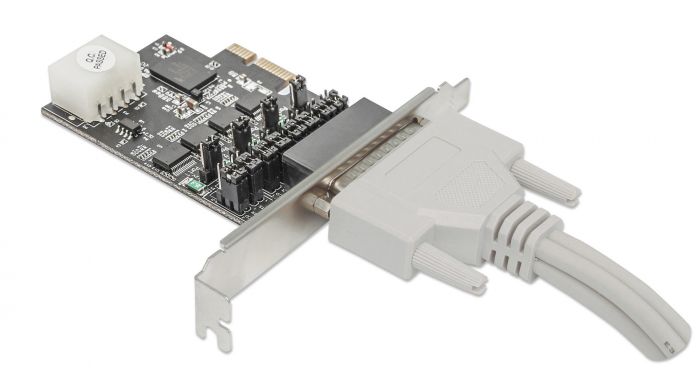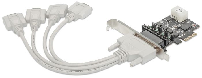 Añade hasta cuatro periféricos seriales con el menor de los inconvenientes.<br />Compatible con la mayoría de los periféricos RS232, la Tarjeta Serial PCI Express de Manhattan con salida de alimentación de 5V incluye un adaptador que te permite conectar hasta cuatro dispositivos seriales independientes - módems, lectores de códigos de barras, impresoras y más - a través de una sola tarjeta PCI. Es ideal para aplicaciones de punto de venta ya que ayuda a eliminar las fuentes de alimentación de los otros periféricos conectados, a reducir el desorden y mejorar la fiabilidad. Sus puertos COM 16C950 UART serial DB9 de alta velocidad son totalmente compatibles con el uso compartido de IRQ PCI, incluso si se accede a ellos simultáneamente, para ayudar a ahorrar recursos valiosos para otras tarjetas de expansión.<br /><br />Fácil instalación
