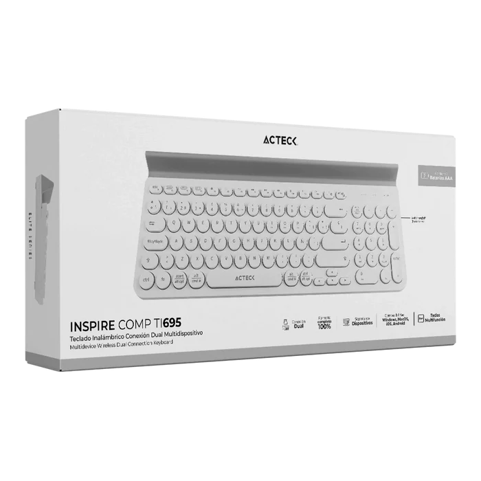 Teclado Acteck Multidispositivo Ti695, 3 Modos, Bt, Blanco (AC-934213)