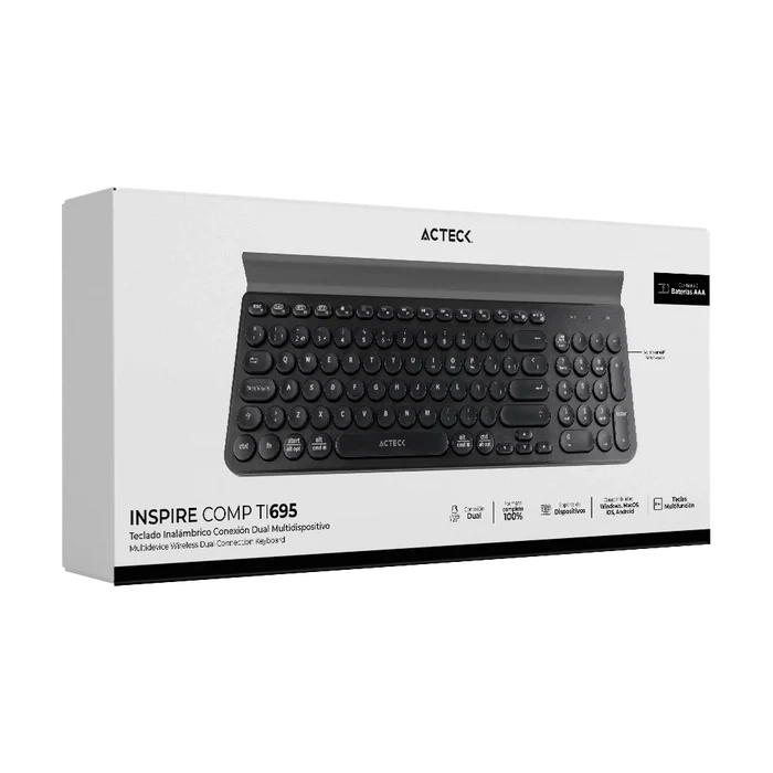Teclado Acteck Multidispositivo Ti695, 3 Modos Bt, Negro (Ac-934206)
