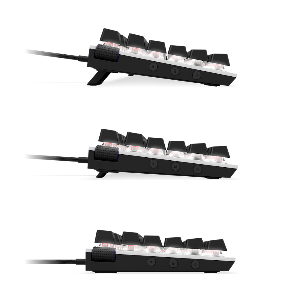 El exclusivo factor de forma MiniTKL incluye de manera impresionante las 87 teclas de un teclado numérico convencional en el tamaño más pequeño posible, e incluso logra incluir una tecla macro dedicada adicional.