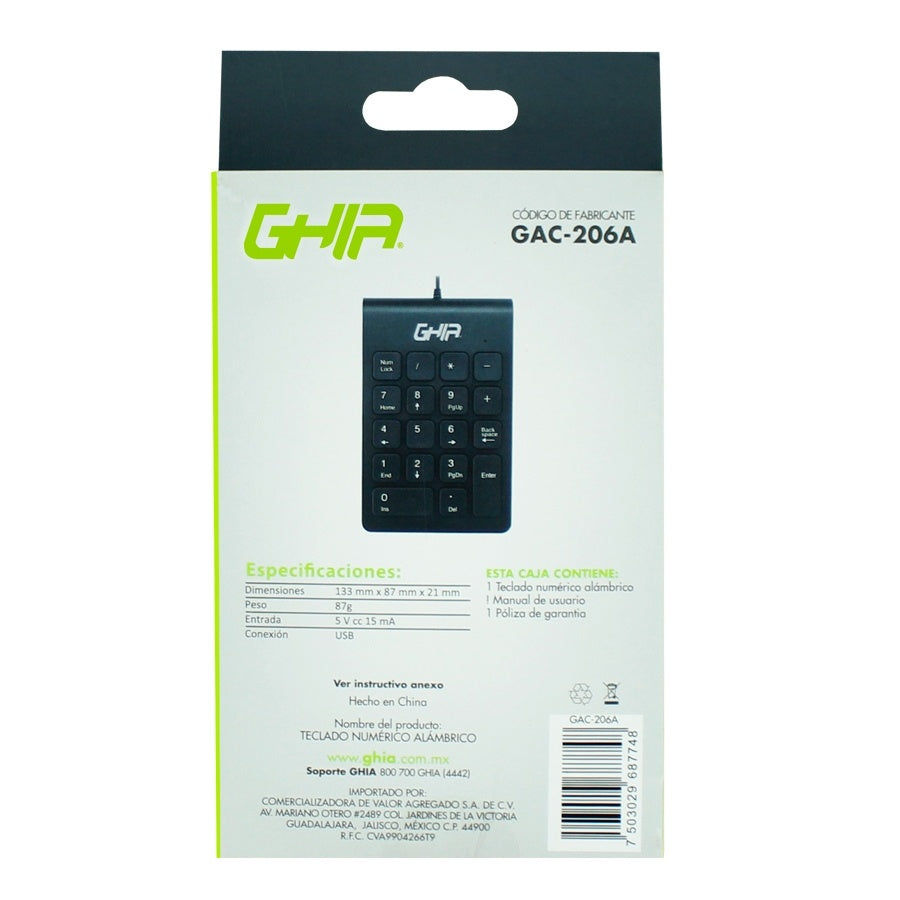 Teclado Numerico Ghia Alambrico Usb Delgado Y Elegante Color Negro