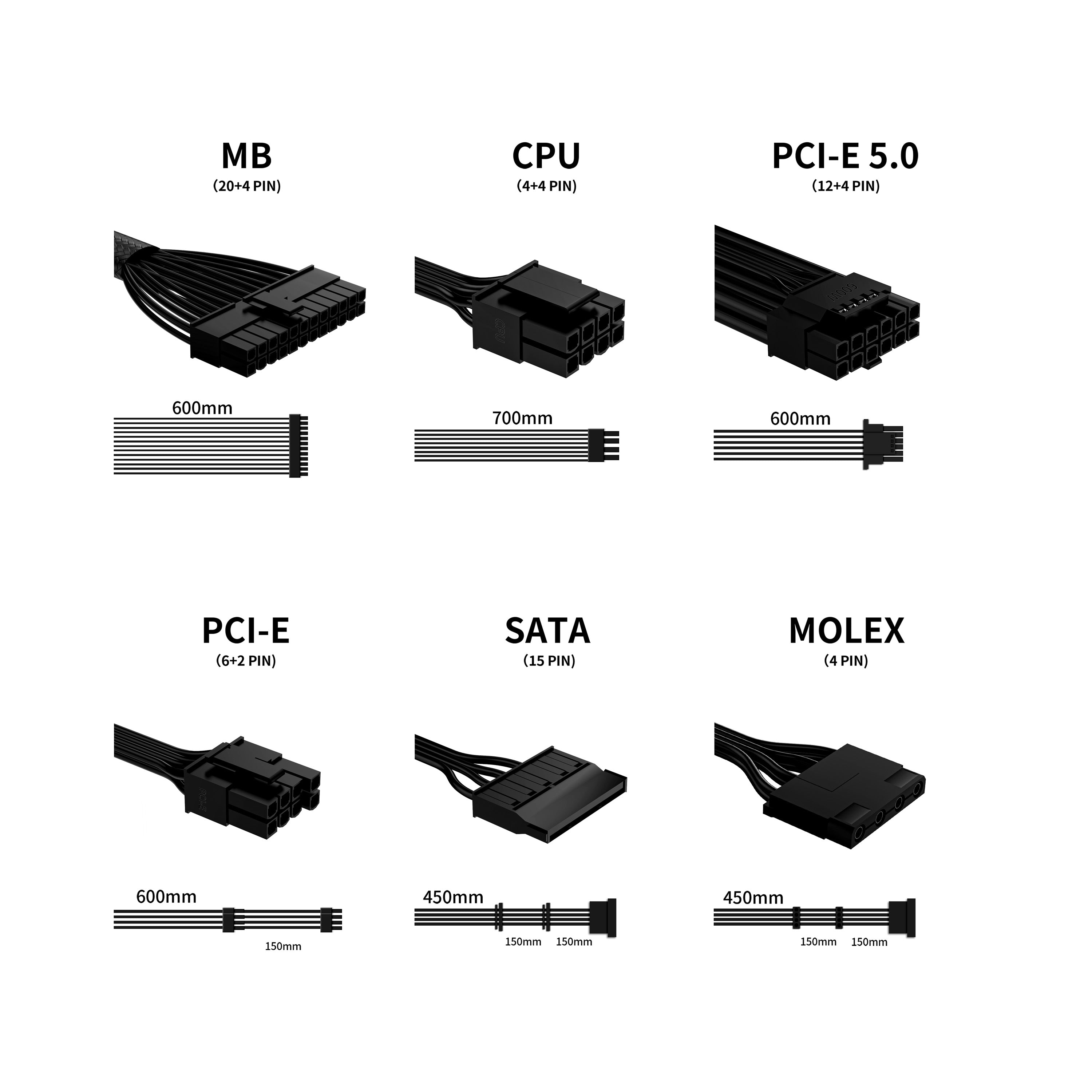 Yeyian Fuente De Poder Pegasus - Atx 3.0, 1000w, 80+ Platino, Pci-E Gen5, Proteccion Ocp, Ovp, Uv, Scp, Otp, Olp, Ventilador Dinamico 140mm, Yfp-1k031-01